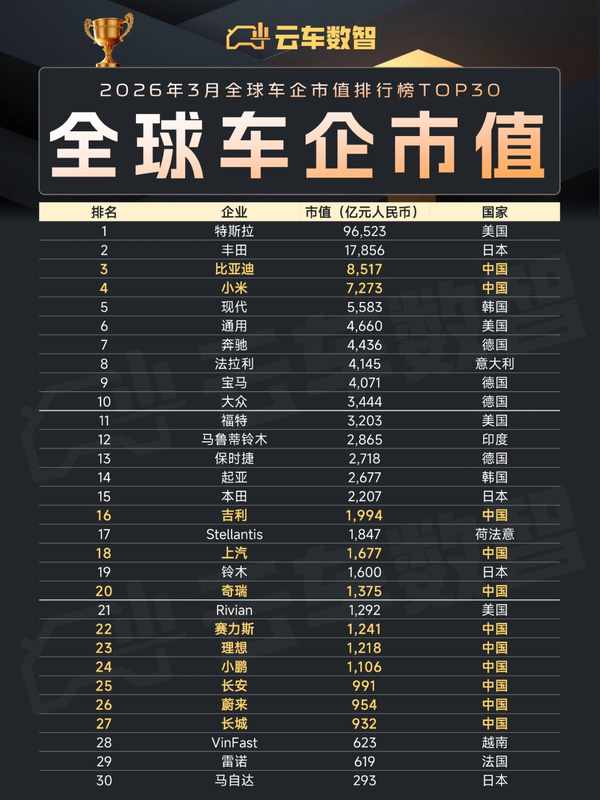 即将发布的年度报告也备受期待,机构预测显示公司收入有望达到较高区间。从电池技术的持续创新,到全球市场的稳步扩张,比亚迪正在以实际行动改写中国汽车产业在国际舞台上的故事。近期全球汽车销量榜单显示,中国车企整体表现突出,首次在总销量上超越传统强国,比亚迪作为中国品牌代表,位居前列。